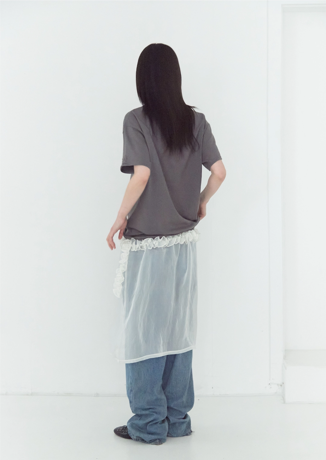 CREAM SEE-THROUGH FRILL MIDI SKIRT