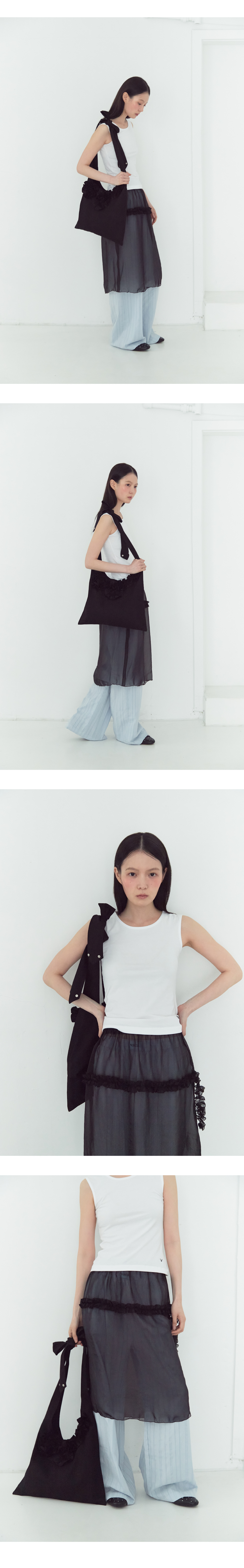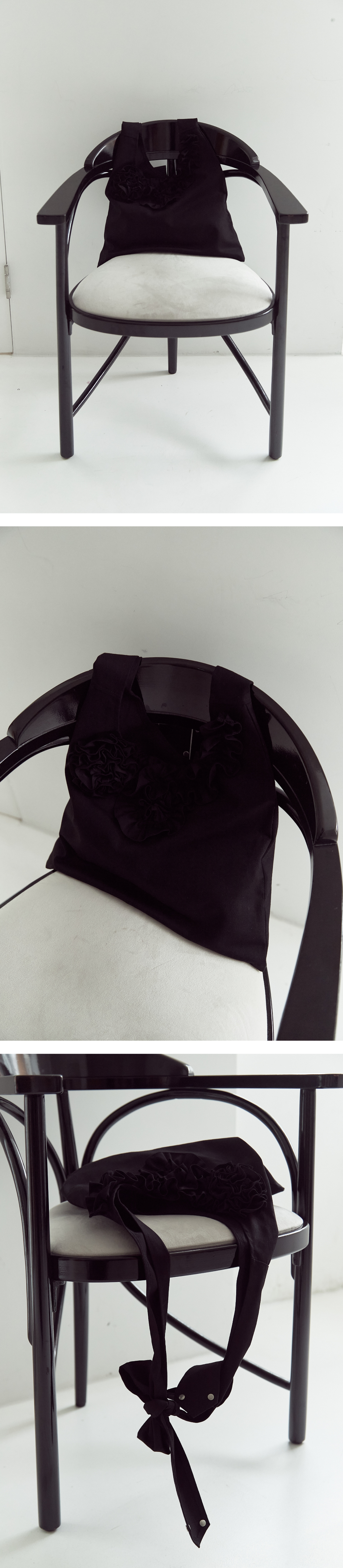 - 꽃 프릴과 리벳 디테일이 매력적인 아이템이며, 여유로운 사이즈로 수납이 용이함.