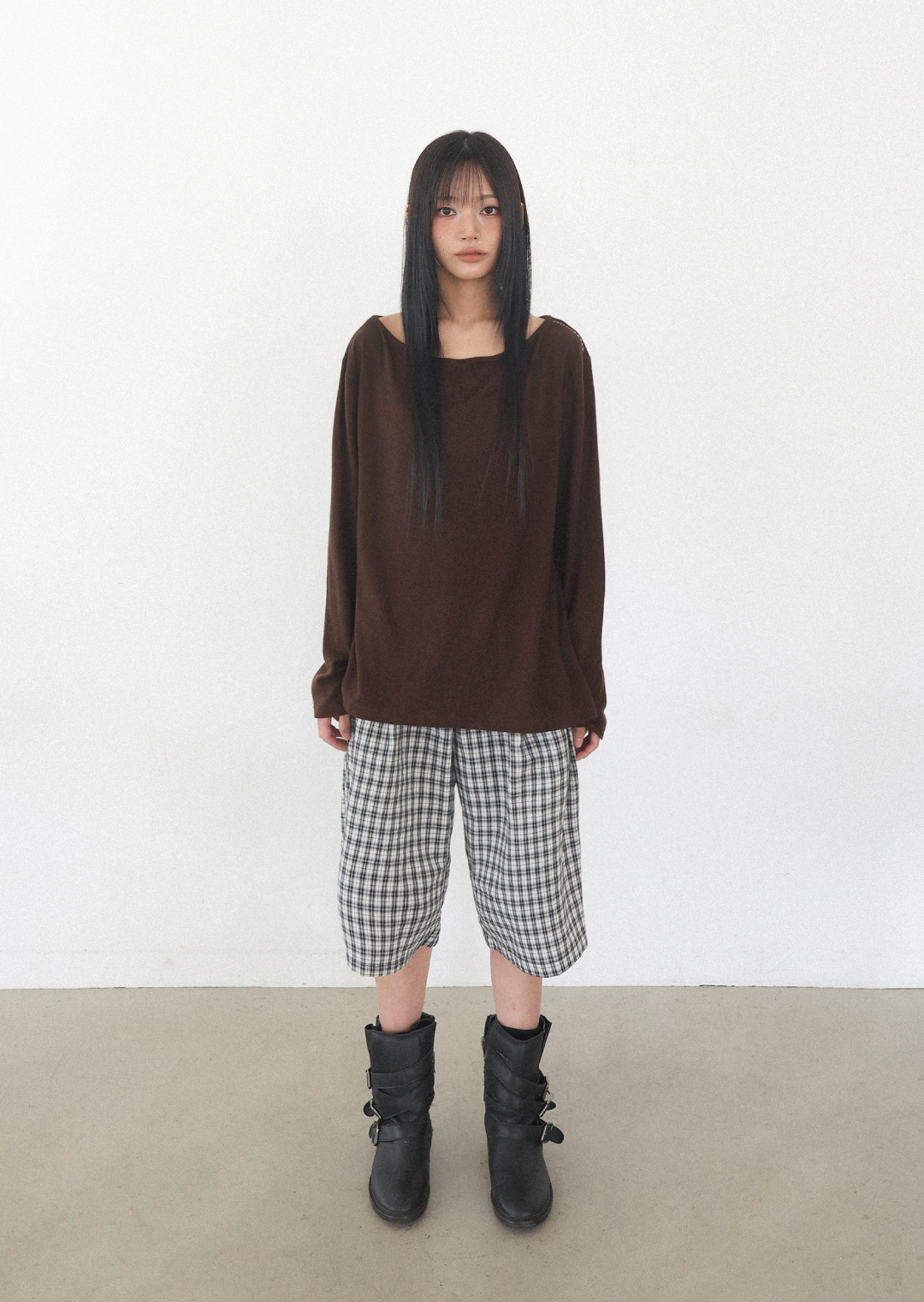 - 클래식한 타탄 체크 패턴에 직조 라벨로 포인트를 준 버뮤다 팬츠
