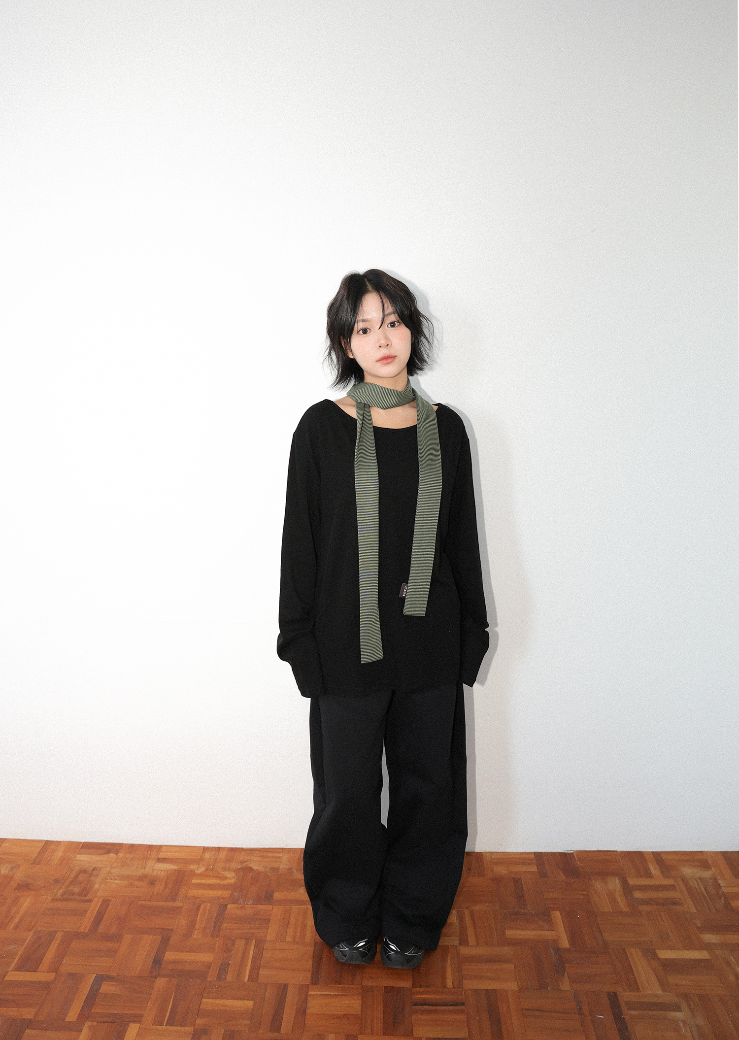 - 한 번 두른 후 묶어 연출하기 알맞은 기장으로 여름 제외한 사계절 착용 가능